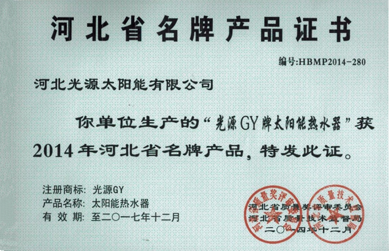 河北省名牌產(chǎn)品證書(shū)