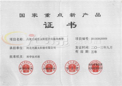 國(guó)家重點(diǎn)新產(chǎn)品證書