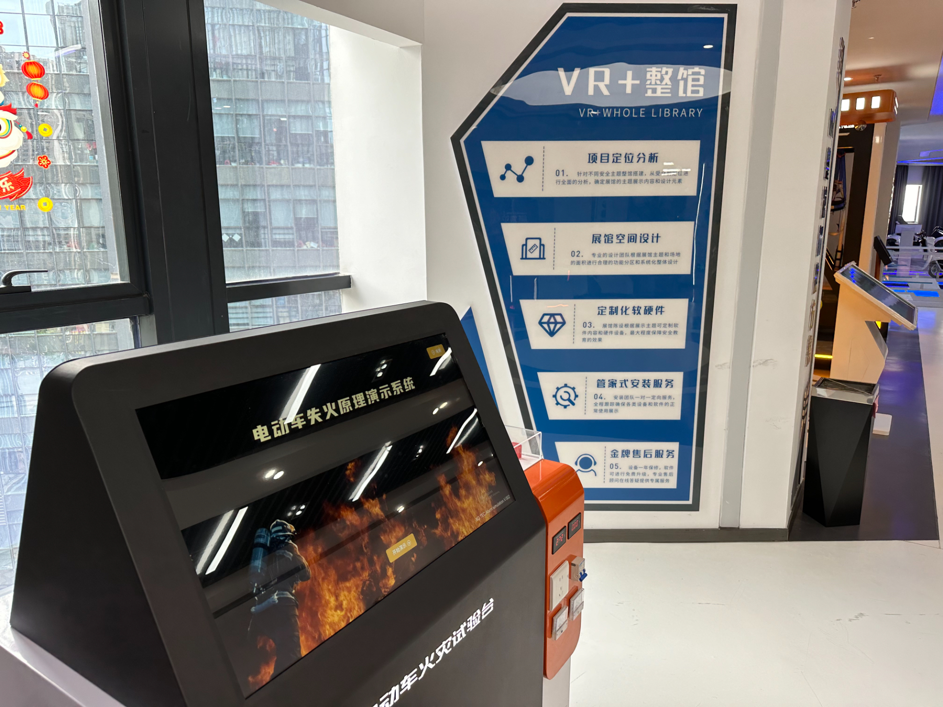 該區(qū)域共有四個智慧化模擬體驗器材,分別為模擬滅火體驗、模擬報警體驗、模擬觸電體驗和電動車失火視頻模擬體驗。觸電體驗?zāi)M器前,在培訓(xùn)老師的講解下,雅努思員工也正式體驗了一把“觸電的感覺”。