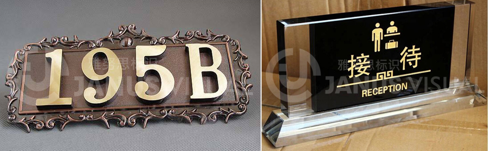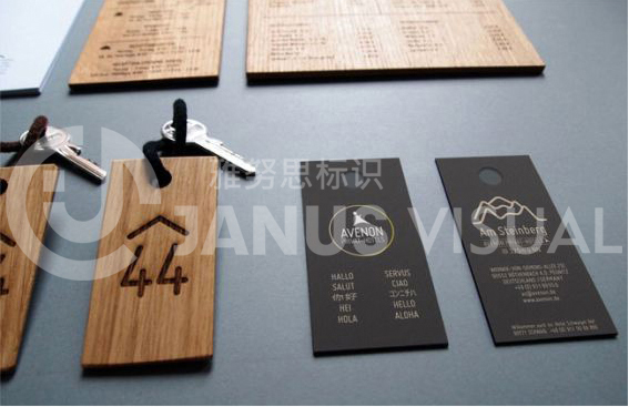 酒店標(biāo)識(shí)牌是一種應(yīng)用于酒店的廣告標(biāo)牌。酒店標(biāo)識(shí)系統(tǒng)是根據(jù)酒店整體設(shè)計(jì)風(fēng)格為導(dǎo)向,綜合解決酒店方向性引導(dǎo),視覺識(shí)別等運(yùn)行功能為前提配合酒店整體工程項(xiàng)目實(shí)施的其中一部分工程。主要用以突出酒店的風(fēng)格特色,主要制作材質(zhì)以紅木、金屬(銅、鐵、鋁、錫、鈦金、不銹鋼)為主,制作工藝較為復(fù)雜,選用材質(zhì)也很多。按照功能來劃分,酒店標(biāo)牌分大堂指示牌(如收銀)、樓層指示牌、門號(hào)牌、功能指示牌、時(shí)鐘指示牌、告示牌、房?jī)r(jià)牌、外幣兌換牌等。